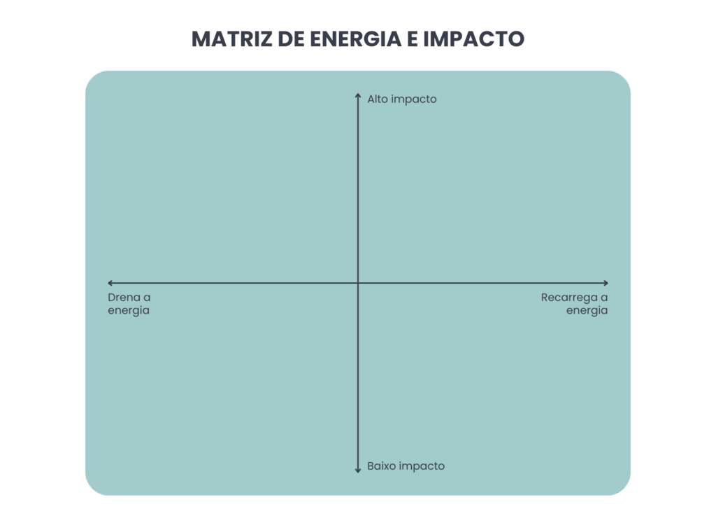 Isso porque, conforme mencionei no começo, a produtividade está relacionada ao uso da sua energia. Então o objetivo da matriz é encontrar as atividades que fazem você se sentir energizado(a) e aquelas que te drenam.